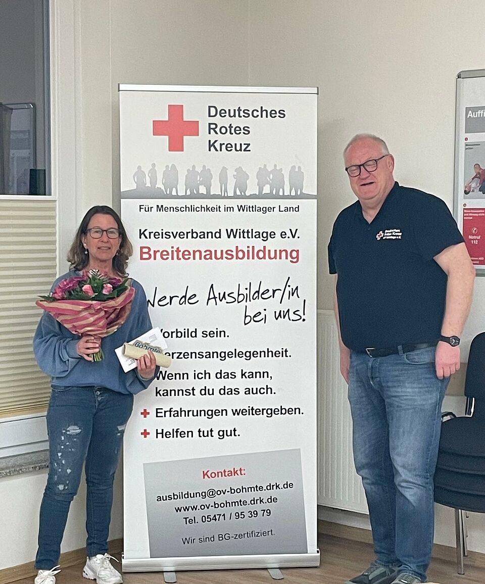 Barabra Wegner hat im Dezember 2025 Ihre Ausbildung erfolgreich beendet und darf künftig für den Kreisverband Wittlage die Erst-Hilfe Ausbildung durchführen. Sie ist damit im Ausbilder Team die 10. Ausbilderin im KV Wittlage. Für so einen kleinen Kreisverband wie dem KV Wittlage ist das schon eine stolze Zahl. Wir gratulieren Ihr recht herzlich und freuen uns auf die Zusammenarbeit mit Ihr.