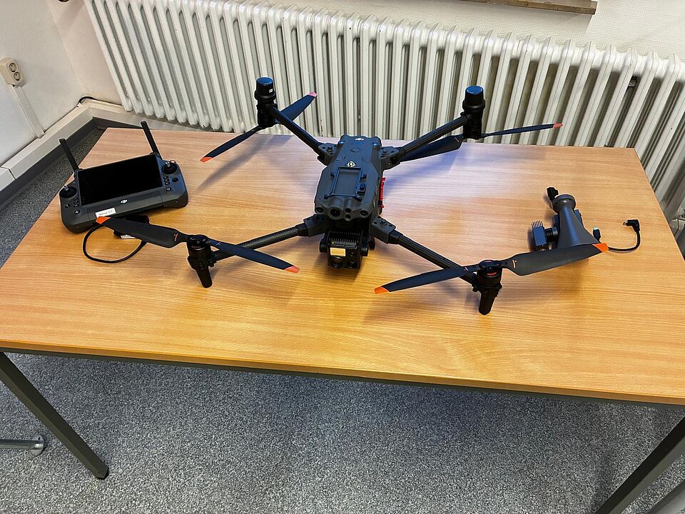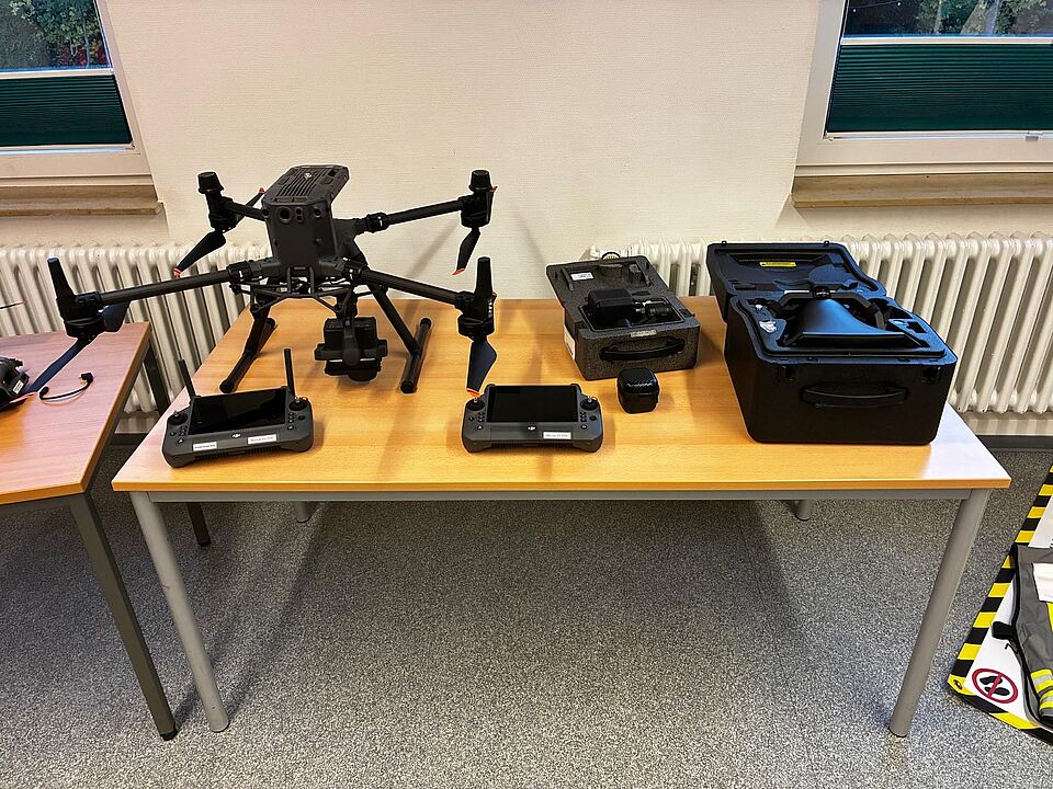 Für Ausbildungs- und Trainingseinheiten stehen der Staffel drei Drohnen des Typs DJI Mini 4 Pro zur Verfügung. Darüber hinaus verfügt die Einheit über leistungsstarke Einsatztechnik: eine DJI M30T mit umfangreichem Zubehör sowie eine DJI M350 RTK ausgestattet mit einer H30T-Kamera, einen Lautsprecher, einem Hochleistungsscheinwerfer, sowie einem Absetzsystem Diese Technik ermöglicht auch anspruchsvolle Einsätze, beispielsweise bei schwierigen Sichtverhältnissen oder in unübersichtlichem Gelände.